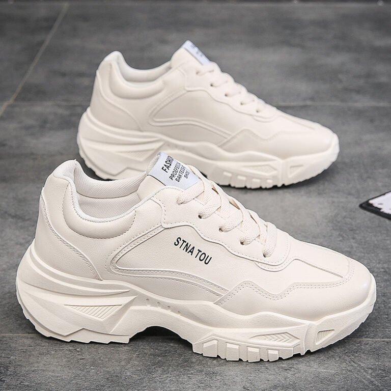 Casual Leather Sneakers Thick Sole Sneakers Fashion Outdoor Shoes Non-slip Low Top-dce97