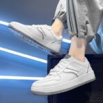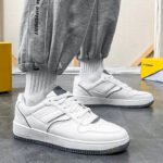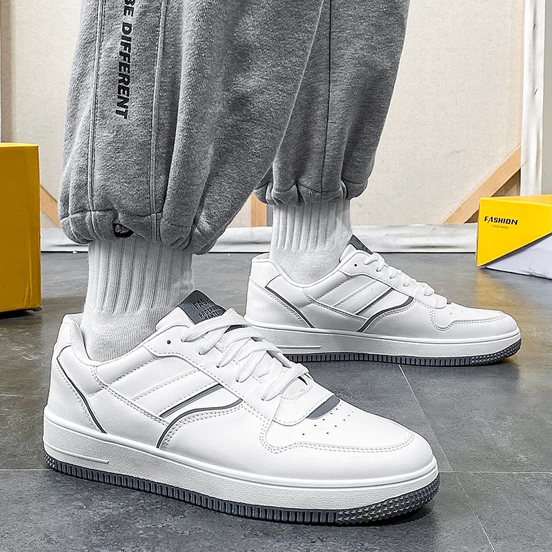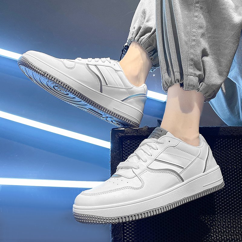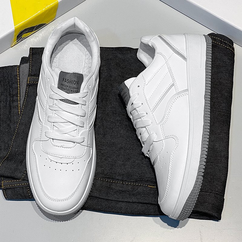 This stylish and classic white sneaker combines premium synthetic leather with a minimalist design and modern trends, delivering an ultimate fashion look. The breathable upper ensures all-day comfort, while the durable anti-slip rubber outsole provides stability and safety with every step. Its lightweight design and cushioned insole offer superior shock absorption, reducing fatigue during extended wear. Whether for daily casual wear, commuting, or light sports, these versatile sneakers seamlessly complement your style and are a must-have addition to your wardrobe.