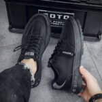 Step into style and comfort with these sleek, all-black sneakers, designed for the modern trendsetter. Crafted with high-quality materials, these shoes feature a durable anti-slip outsole for stability and confidence in every step. The breathable upper ensures long-lasting comfort, making them perfect for daily wear, work, or outdoor activities. Combining a minimalist design with subtle fashion elements like the “Fashion” side strap, these sneakers effortlessly complement casual, business-casual, and streetwear looks. Elevate your footwear game with these versatile and stylish sneakers – your ultimate go-to pair for comfort and durability!
