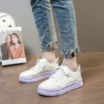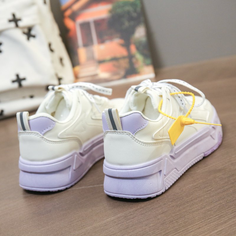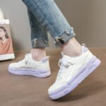 These white and purple chunky sneakers feature a clean white base accented with soft purple details on the sole and heel, creating a stylish and unique look. The upper is crafted from premium synthetic leather, providing a soft touch, breathability, and all-day comfort. The thick cushioned sole offers excellent shock absorption and stability, while the anti-slip design ensures secure steps. Perfect for commuting, casual outings, or trendy streetwear, these sneakers effortlessly enhance your fashion-forward style.